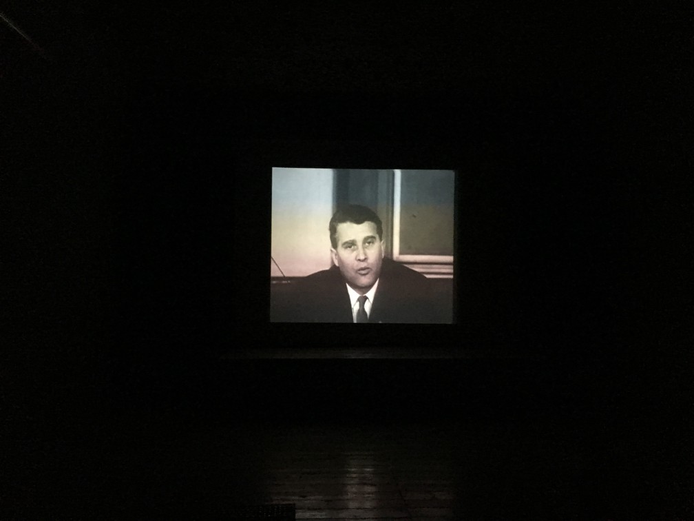 Turistas são convidados a entrar em sala que exibe filme sobre a história da Guerra Fria (Foto: Adriane Schultz/G1)